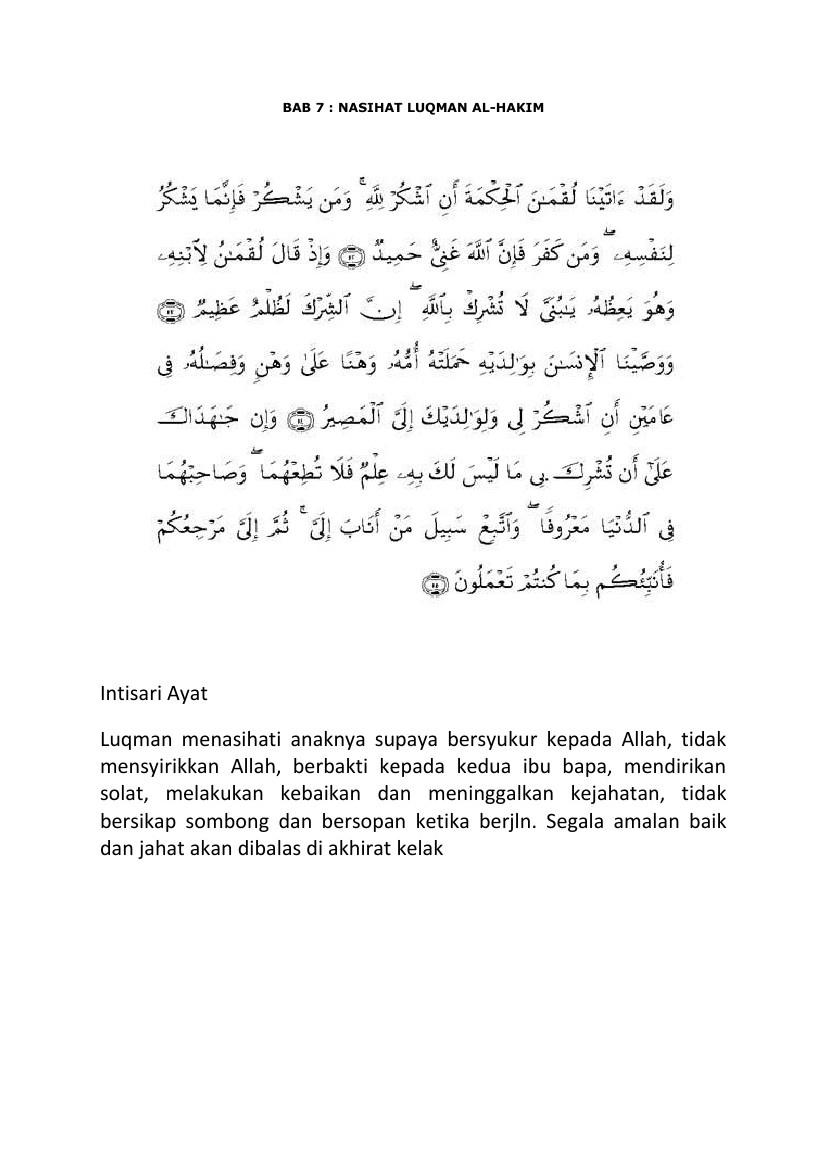 Kalam Diri Pelajaran 7 Nasihat Luqman Al Hakim