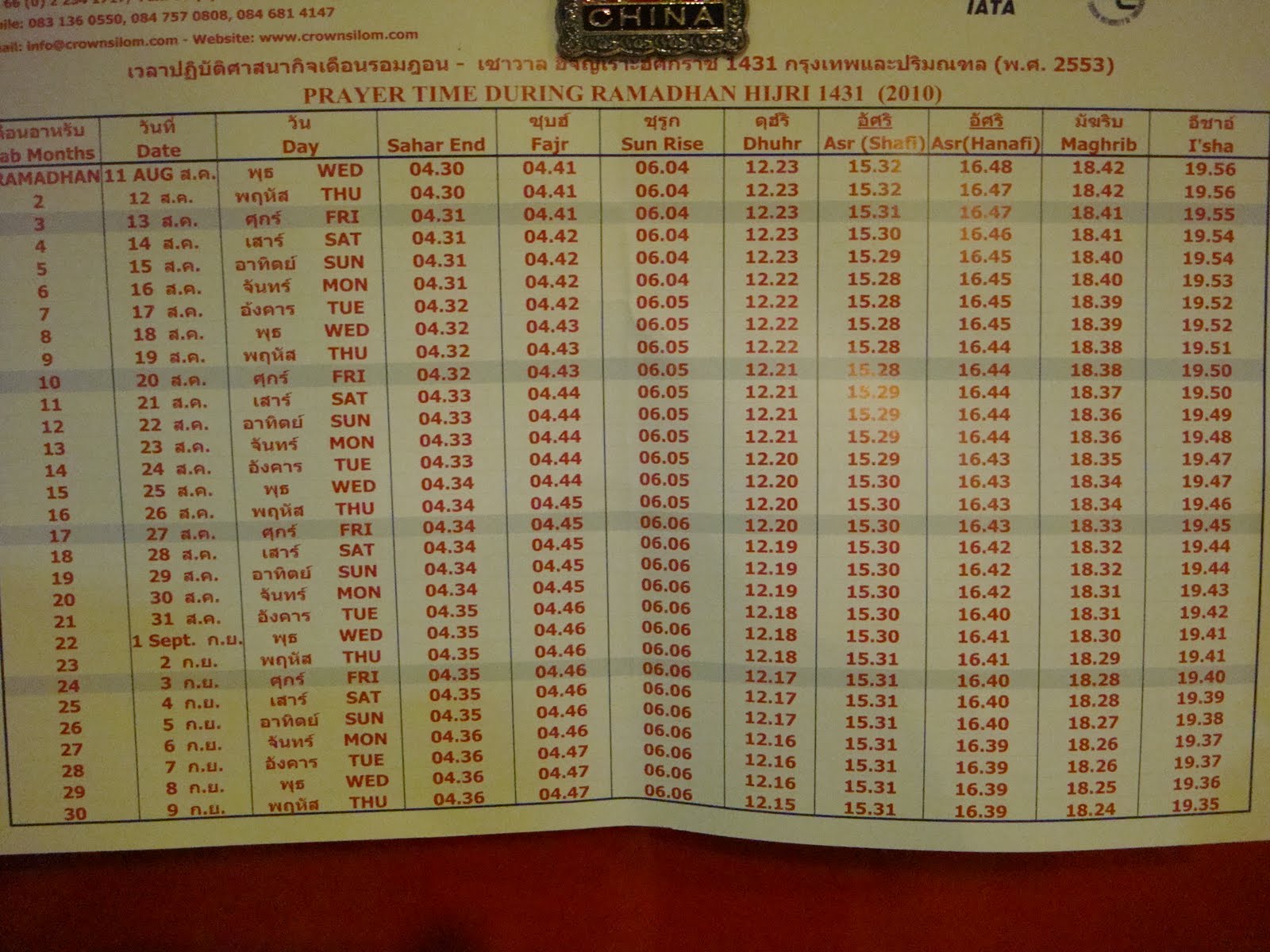 Lynn Prayer Timetable For Ramadhan 2010 In Bangkok Thailand