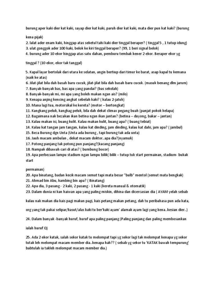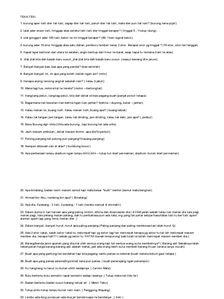 Pelbagai Contoh Teka Teki 2 Jawapan Yang Power Untuk Ibubapa Pekeliling Terbaru Kerajaan