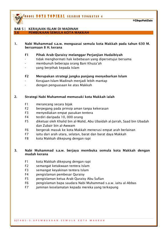 Pembukaan semula kota makkah. 630 masihi nabi muhammad saw membuka semula kota makkah. Mencontohi akhlak baginda yang tawadu dan sentiasa bersyukur menjadi seorang pemaaf mengamalkan sifat sabar dalam kehidupan. Faktor 3 semangat jihad umat islam 4 pembesar quraish memeluk islam 3. Pembukaan kota makkah yang bermula dengan pembersihan dan penyucian unsur unsur syirik dan negatif telah menjadi momentum kepada perluasan dan kejayaan kuasa islam.