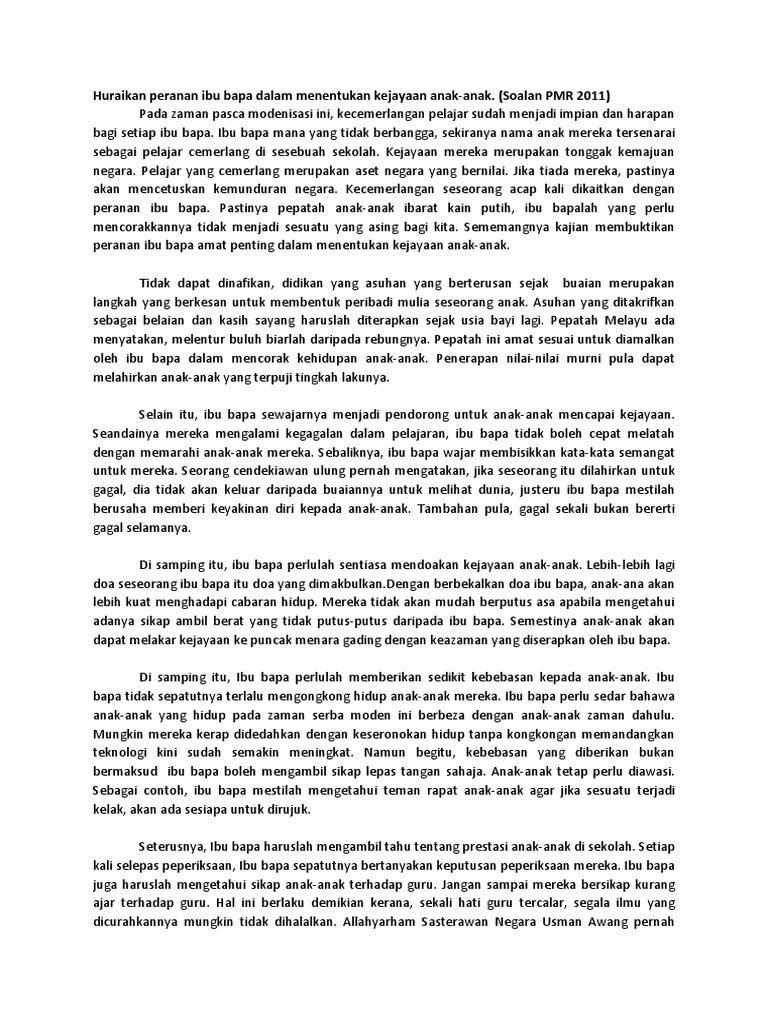 Karangan Peranan Ibu Bapa Dalam Menentukan Kejayaan Anak