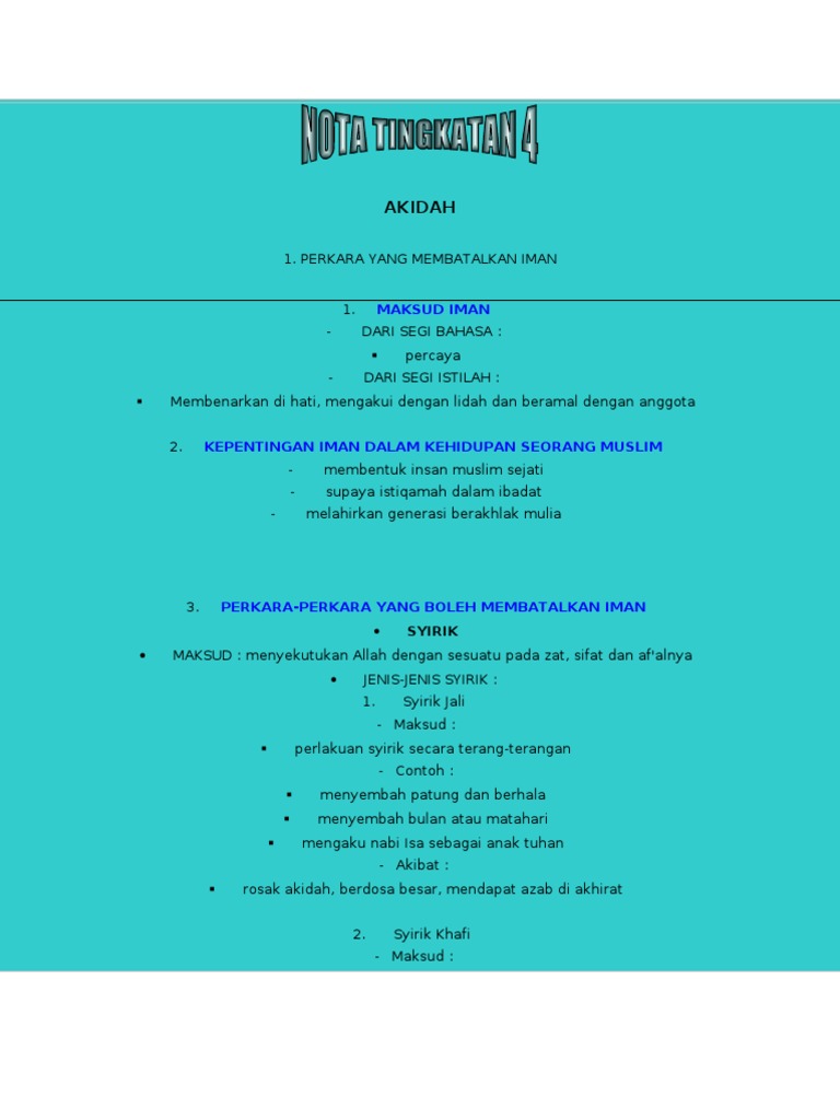 Ting 4 Kssm Akidah Pel 11 Perkara Yang Membatalkan Iman 1 Pages 1 17 Text Version Anyflip
