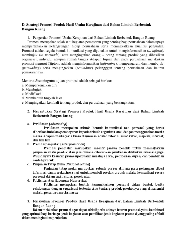 Membuat Promosi Usaha Kerajinan Dari Bahan Limbah Berbentuk Bangun Datar Seputar Bentuk
