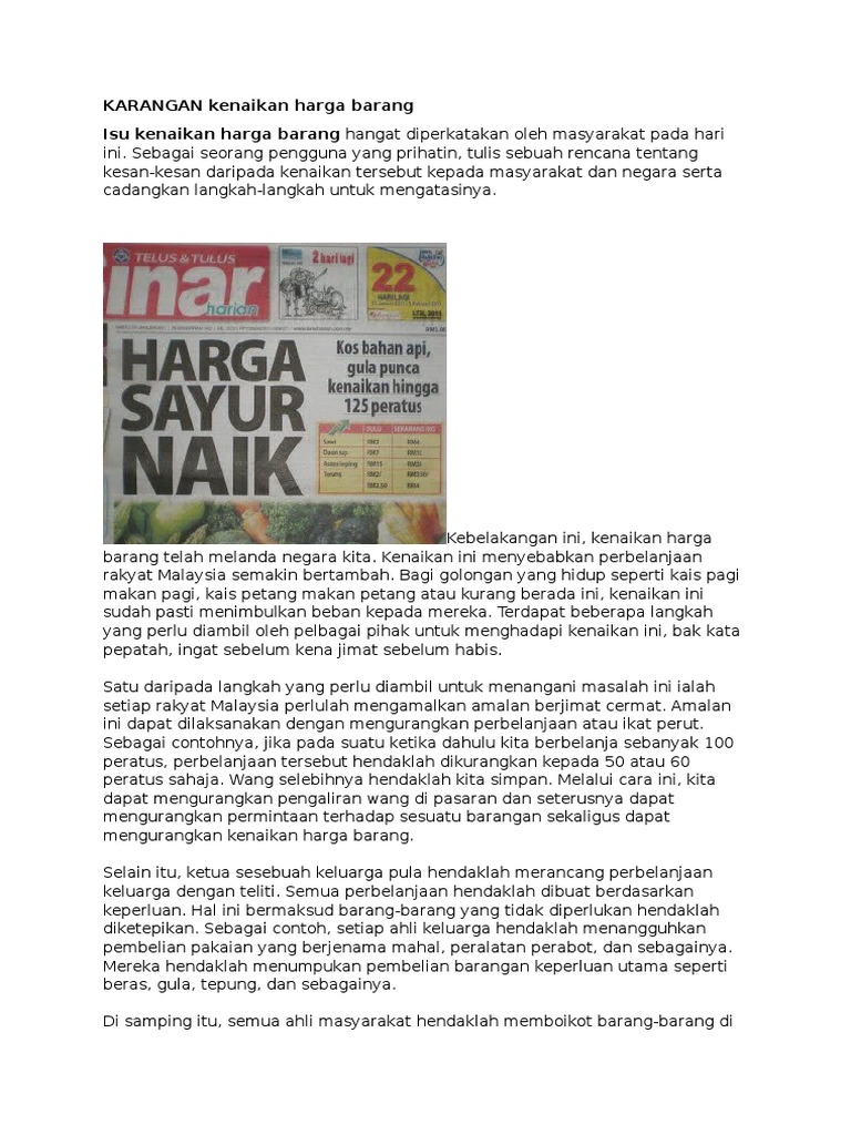 Karangan Kenaikan Harga Barang