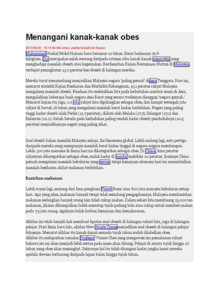 Karangan Obesiti Dalam Kalangan Kanak Knak Docx