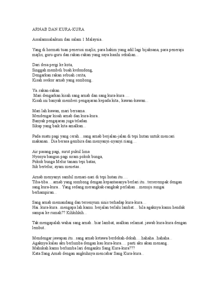 Dialog Cerita Arnab Dan Kura Kura