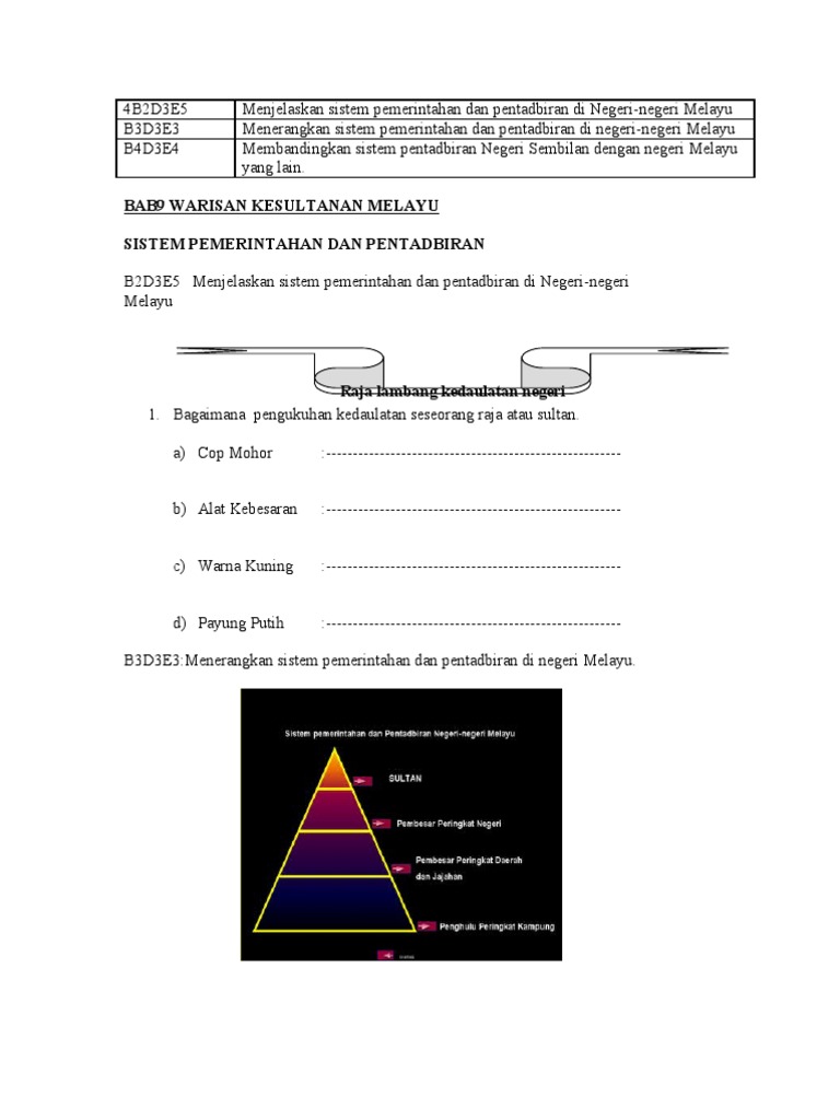 Diberi gelaran yamtuan besar dan bersemayam di seri menanti. Bank soalan latihan. Mengamalkan adat perpatih dan perlantikan pembesar dilakukan di peringkat paling bawah iait anak buah buapak lembaga dan undang. Pentadbiran di negeri negeri melayu sebelum campur tangan british dibahagikan kepada pentadbiran peringkat negeri daerah dan kampung.
